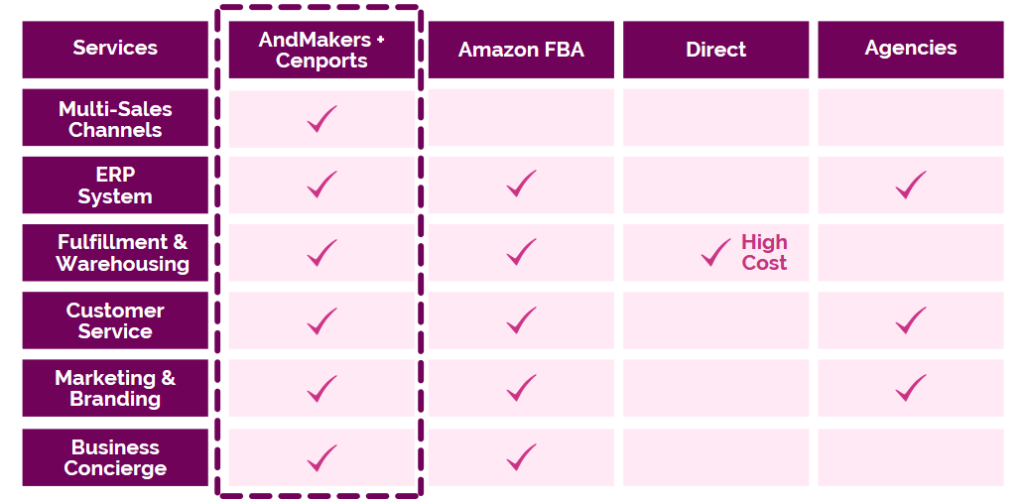在U.S.销售面临着独特的挑战。对于国际供应商来说,最大的两个障碍是承租仓库空间的承诺以及产品在U.S.市场的表现不确定性。由于大多数仓库空间需要长期租约,再加上需要员工来管理和处理库存运营,这可能变得非常昂贵和风险高。通过与3PL(第三方物流)服务合作,许多这些风险可以得到缓解。3PL服务(包括mPorts | AndMakers)提供库存空间以及处理所有的运输、履行和退货,让您可以更专注于您的业务。与mPorts | AndMakers等服务合作将降低您的运营成本,同时减少自行操作的财务风险。